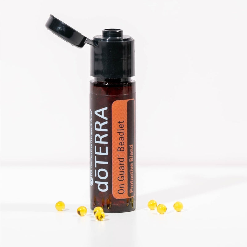 doTERRA On Guard Beadlets are an easy and convenient way to obtain the immune-boosting benefits of doTERRA On Guard Essential Oil Blend.* doTERRA On Guard Beadlets provide a flavorful dose of doTERRA’s proprietary blend of Wild Orange, Clove, Cinnamon, Eucalyptus, and Rosemary, all contained in tiny vegetable beadlets that dissolve in the mouth to freshen breath and support the immune system. doTERRA On Guard Beadlets are perfect for home use, while traveling, and to boost your family’s immunity—anytime, anywhere.